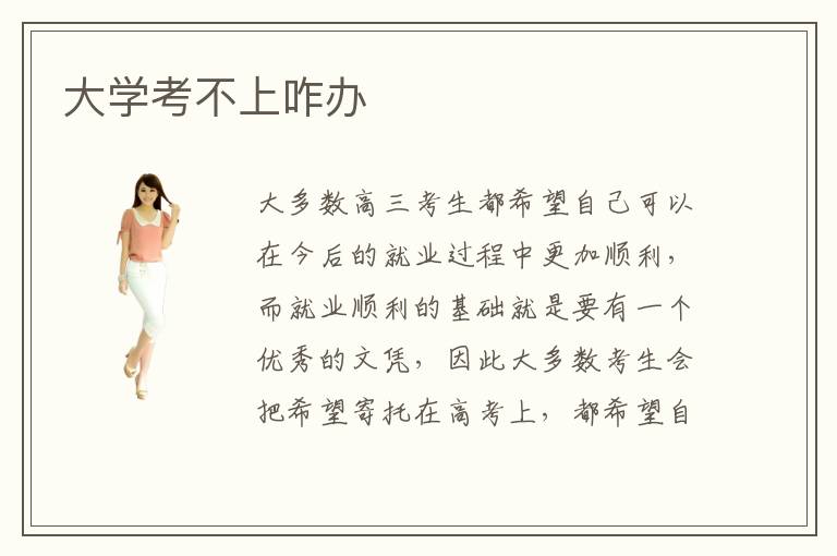 大多數(shù)高三考生都希望自己可以在今后的就業(yè)過(guò)程中更加順利,而就業(yè)順利的基礎(chǔ)就是要有一個(gè)優(yōu)秀的文憑,因此大多數(shù)考生會(huì)把希望寄托在高考上,都希望自己在高考過(guò)程中取得優(yōu)異的成績(jī),順利考上心目中的理想大學(xué)。然而并不是每個(gè)考生都可以順利考上大學(xué)的,那么這些大學(xué)考不上的同學(xué)應(yīng)該怎么辦呢?大學(xué)考不上的同學(xué)要做的是調(diào)整好自己的心態(tài),學(xué)好一門(mén)專(zhuān)業(yè)技術(shù)是未來(lái)就業(yè)的關(guān)鍵。