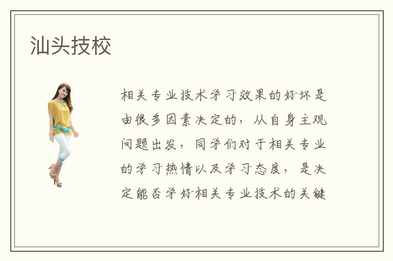 相關(guān)專業(yè)技術(shù)學(xué)習(xí)效果的好壞是由很多因素決定的,從自身主觀問題出發(fā),同學(xué)們對于相關(guān)專業(yè)的學(xué)習(xí)熱情以及學(xué)習(xí)態(tài)度,是決定能否學(xué)好相關(guān)專業(yè)技術(shù)的關(guān)鍵。從環(huán)境等客觀因素出發(fā),相關(guān)專業(yè)技術(shù)培訓(xùn)學(xué)校的教學(xué)質(zhì)量、課程設(shè)計以及教學(xué)方式等,也將會覺得相關(guān)專業(yè)技術(shù)學(xué)習(xí)效果的好壞。那么,你知道汕頭技校的專業(yè)課程教學(xué)質(zhì)量怎么樣呢?汕頭技校的培訓(xùn)效果好不好呢?
