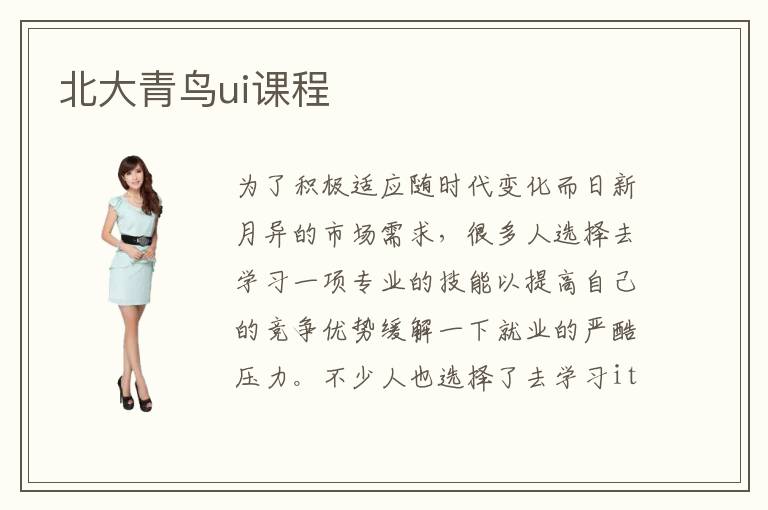 為了積極適應(yīng)隨時(shí)代變化而日新月異的市場(chǎng)需求,很多人選擇去學(xué)習(xí)一項(xiàng)專業(yè)的技能以提高自己的競(jìng)爭(zhēng)優(yōu)勢(shì)緩解一下就業(yè)的嚴(yán)酷壓力。不少人也選擇了去學(xué)習(xí)it行業(yè)。UI設(shè)計(jì)成為了一個(gè)不錯(cuò)的選擇,北大青鳥ui課程類別是什么?北大青鳥UI培訓(xùn)機(jī)構(gòu)的課程包括理論課程與實(shí)踐課程兩方面,在注重學(xué)生專業(yè)技能的同時(shí)也讓其操作能力得到增強(qiáng)。北大青鳥ui的課程安排靈活嘛?