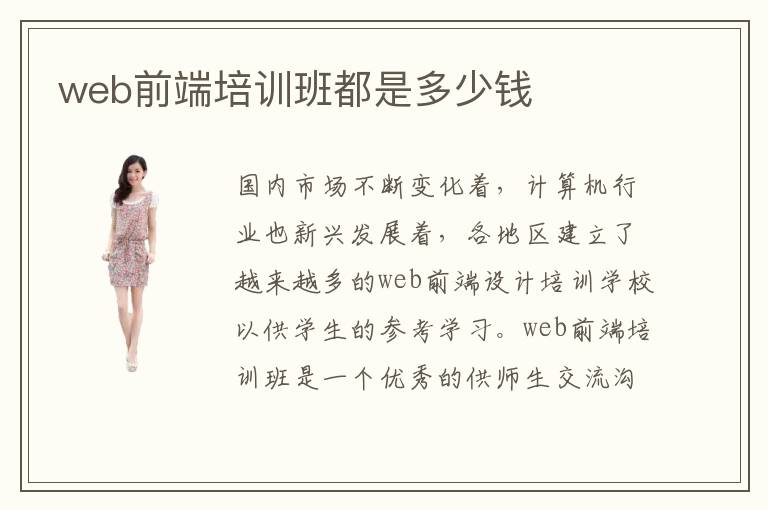 國(guó)內(nèi)市場(chǎng)不斷變化著,計(jì)算機(jī)行業(yè)也新興發(fā)展著,各地區(qū)建立了越來(lái)越多的web前端設(shè)計(jì)培訓(xùn)學(xué)校以供學(xué)生的參考學(xué)習(xí)。web前端培訓(xùn)班是一個(gè)優(yōu)秀的供師生交流溝通、可以零距離接觸的線下平臺(tái),方便學(xué)生更好地學(xué)習(xí),方便老師更好地進(jìn)行培訓(xùn)工作。web前端培訓(xùn)班都是多少錢?web前端培訓(xùn)班平均培訓(xùn)費(fèi)用是多少?web前端培訓(xùn)班在國(guó)內(nèi)大概的學(xué)費(fèi)水平是多少?