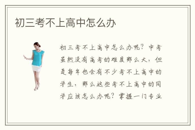 初三考不上高中怎么辦呢?中考雖然沒有高考的難度那么大,但是每年也會(huì)有不少考不上高中的學(xué)生,那么這些考不上高中的同學(xué)應(yīng)該怎么辦呢?掌握一門專業(yè)技術(shù)是在這個(gè)社會(huì)存在的根本保障,這些同學(xué)可以根據(jù)目前社會(huì)發(fā)展形勢,選擇一門具有廣闊發(fā)展前景的專業(yè)技術(shù)進(jìn)行學(xué)習(xí),這樣才能為以后的就業(yè)增添一些保障,因此考不上高中的同學(xué)選擇一所專業(yè)技術(shù)培訓(xùn)學(xué)校是當(dāng)務(wù)之急。