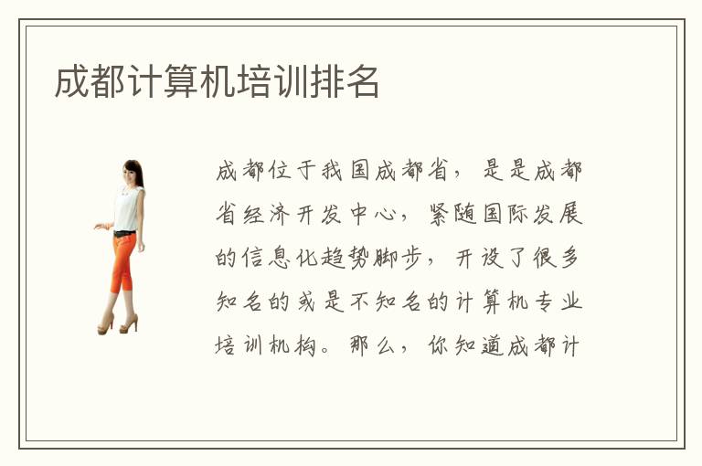 成都位于我國(guó)成都省,是是成都省經(jīng)濟(jì)開發(fā)中心,緊隨國(guó)際發(fā)展的信息化趨勢(shì)腳步,開設(shè)了很多知名的或是不知名的計(jì)算機(jī)專業(yè)培訓(xùn)機(jī)構(gòu)。那么,你知道成都計(jì)算機(jī)培訓(xùn)計(jì)算機(jī)培訓(xùn)排名是什么嘛?為了方便廣大成都學(xué)子更好的學(xué)習(xí)計(jì)算機(jī)專業(yè),北大青鳥計(jì)算機(jī)專業(yè)培訓(xùn)機(jī)構(gòu)、達(dá)內(nèi)計(jì)算機(jī)專業(yè)培訓(xùn)機(jī)構(gòu)等,國(guó)內(nèi)一流的計(jì)算機(jī)專業(yè)培訓(xùn)機(jī)構(gòu),都在成都地區(qū)開設(shè)了分校區(qū),也無(wú)疑成為了培訓(xùn)機(jī)構(gòu)排名中數(shù)一數(shù)二的學(xué)校。