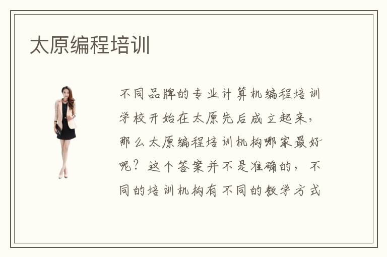 不同品牌的專業(yè)計(jì)算機(jī)編程培訓(xùn)編程培訓(xùn)學(xué)校開始在太原先后成立起來,那么太原編程培訓(xùn)編程培訓(xùn)機(jī)構(gòu)哪家最好呢?這個(gè)答案并不是準(zhǔn)確的,不同的培訓(xùn)機(jī)構(gòu)有不同的教學(xué)方式,需要各位學(xué)員根據(jù)自身的計(jì)算機(jī)基礎(chǔ)知識,以及自我知識的接受能力,從而選擇出最適合自己的學(xué)習(xí)方式,選擇出最適合自己的培訓(xùn)機(jī)構(gòu)。其中,最有效的方式就是去專業(yè)的培訓(xùn)機(jī)構(gòu),進(jìn)行試學(xué)課程的切身體驗(yàn)。