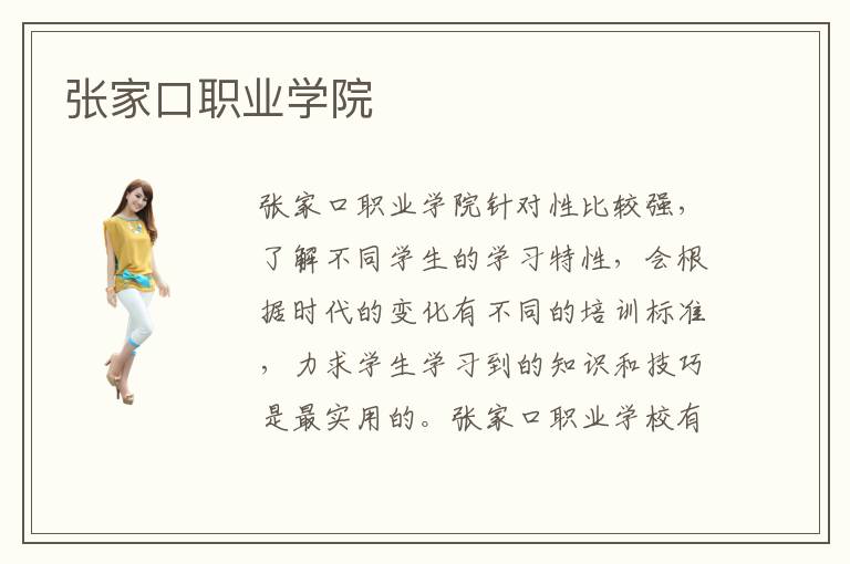 張家口職業(yè)學(xué)院針對性比較強(qiáng),了解不同學(xué)生的學(xué)習(xí)特性,會根據(jù)時代的變化有不同的培訓(xùn)標(biāo)準(zhǔn),力求學(xué)生學(xué)習(xí)到的知識和技巧是最實(shí)用的。張家口職業(yè)學(xué)校有哪幾家呢?張家口職業(yè)學(xué)校雖然都是對學(xué)生職業(yè)技能的培訓(xùn),但是還是會有或多或少的側(cè)重點(diǎn)不同。張家口職業(yè)技術(shù)培訓(xùn)學(xué)校對找工作有用嗎?現(xiàn)如今的就業(yè)市場可謂是人才濟(jì)濟(jì),找工作實(shí)屬不易。