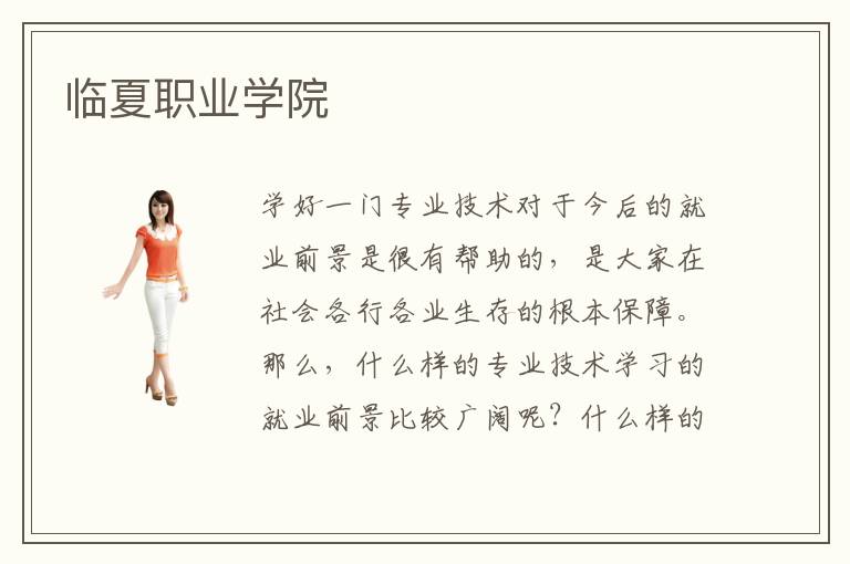 學好一門專業(yè)技術對于今后的就業(yè)前景是很有幫助的,是大家在社會各行各業(yè)生存的根本保障。那么,什么樣的專業(yè)技術學習的就業(yè)前景比較廣闊呢?什么樣的專業(yè)技術學習比較靠譜呢?臨夏職業(yè)學院作為職業(yè)技術培訓學校中比較靠譜的一所,已經(jīng)獲得了廣大市民的信任,在相關專業(yè)的教學質(zhì)量上都是比較可靠的。想要學習專業(yè)技術的同學可以加入到臨夏職業(yè)學院中去。