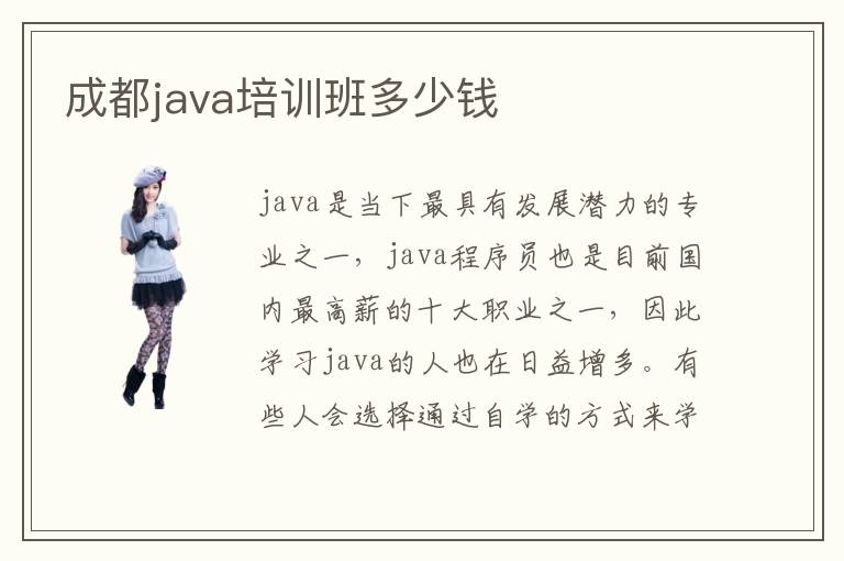 java是當(dāng)下最具有發(fā)展?jié)摿Φ膶I(yè)之一,java程序員也是目前國內(nèi)最高薪的十大職業(yè)之一,因此學(xué)習(xí)java的人也在日益增多。有些人會選擇通過自學(xué)的方式來學(xué)習(xí)java,去書店購買一些java相關(guān)資料的書籍或者去網(wǎng)上尋找一些java相關(guān)專業(yè)的視頻教程,這種方式需要耗費很長的時間,而且不能很好的掌握java專業(yè)技能。選擇有實力的培訓(xùn)機構(gòu)是個不錯的選擇,成都java培訓(xùn)java培訓(xùn)班多少錢呢?