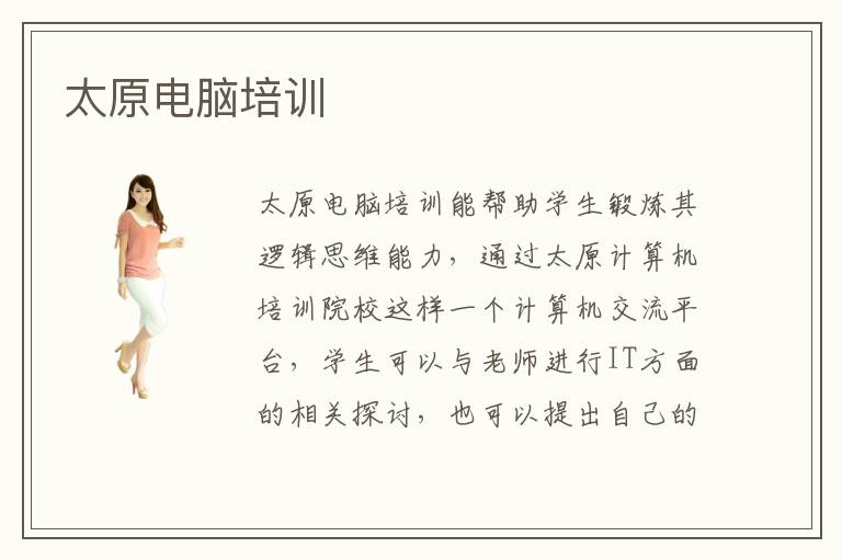 太原電腦培訓(xùn)能幫助學(xué)生鍛煉其邏輯思維能力,通過太原計(jì)算機(jī)培訓(xùn)院校這樣一個(gè)計(jì)算機(jī)交流平臺(tái),學(xué)生可以與老師進(jìn)行IT方面的相關(guān)探討,也可以提出自己的疑問更好地方面學(xué)生解決學(xué)習(xí)困難。太原計(jì)算機(jī)培訓(xùn)學(xué)校排名對(duì)培訓(xùn)學(xué)校的選擇有幫助嗎?可以說,在不了解太原地區(qū)的計(jì)算機(jī)IT培訓(xùn)學(xué)校的時(shí)候,這份排名表對(duì)我們選擇起到至關(guān)重要的作用。太原電腦培訓(xùn)有用嗎?