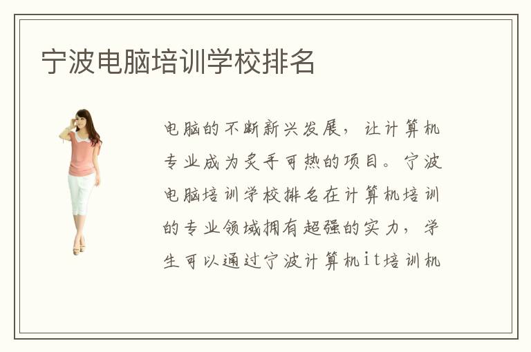 國內(nèi)計算機培訓(xùn)正如火如荼地展開,為了方便學(xué)生接受到更加優(yōu)秀更加高質(zhì)量的計算機知識的學(xué)習(xí),寧波地區(qū)投入大量的經(jīng)濟進行電腦培訓(xùn)機構(gòu)的設(shè)立。寧波電腦培訓(xùn)排名是有科學(xué)依據(jù)性的,綜合各家培訓(xùn)學(xué)校的培訓(xùn)實力和培訓(xùn)效果進行多方面比對而最終得出的結(jié)論。寧波計算機培訓(xùn)機構(gòu)應(yīng)該如何挑選?怎么樣才能選擇到最好的寧波培訓(xùn)機構(gòu)?寧波電腦培訓(xùn)專業(yè)學(xué)校推薦有哪些?