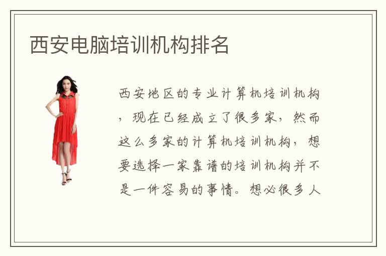 西安地區(qū)的專業(yè)計算機培訓機構(gòu),現(xiàn)在已經(jīng)成立了很多家,然而這么多家的計算機培訓機構(gòu),想要選擇一家靠譜的培訓機構(gòu)并不是一件容易的事情。想必很多人都對西安電腦培訓機構(gòu)電腦培訓機構(gòu)排名有所了解,西安電腦培訓機構(gòu)排名,可以幫助大家在更快的時間內(nèi)完成計算機培訓機構(gòu)的篩選,減少各位學員的選擇時間,可以做出更快更好的選擇,讓學員接受到更高質(zhì)量的計算機教學。