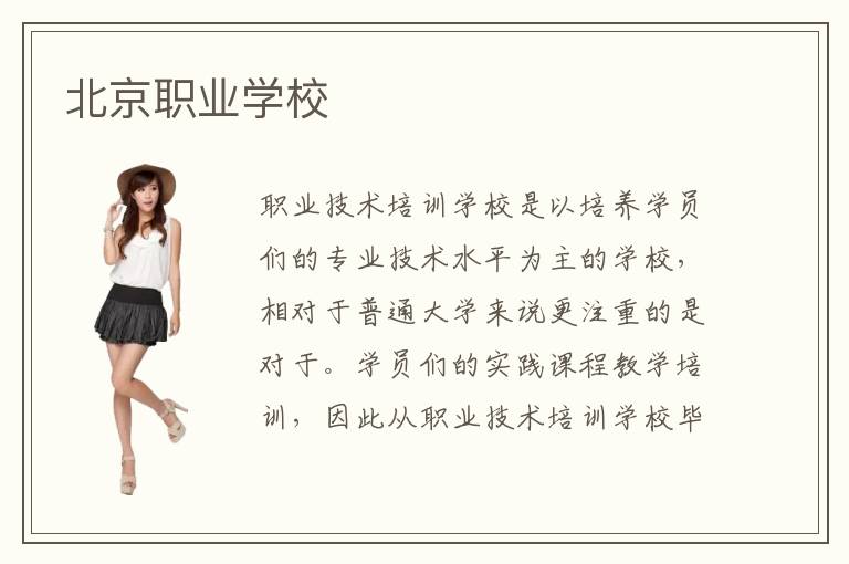 職業(yè)技術(shù)培訓(xùn)學(xué)校是以培養(yǎng)學(xué)員們的專(zhuān)業(yè)技術(shù)水平為主的學(xué)校,相對(duì)于普通大學(xué)來(lái)說(shuō)更注重的是對(duì)于。學(xué)員們的實(shí)踐課程教學(xué)培訓(xùn),因此從職業(yè)技術(shù)培訓(xùn)學(xué)校畢業(yè)的學(xué)生相對(duì)于大學(xué)生而言,在專(zhuān)業(yè)技術(shù)掌握程度上更具有優(yōu)勢(shì)。那么,你知道北京職業(yè)學(xué)校的入學(xué)門(mén)檻是什么呢?想要進(jìn)入北京職業(yè)學(xué)校并不困難,北京職業(yè)學(xué)校并不會(huì)過(guò)多的重視學(xué)員們的學(xué)歷,只是以技術(shù)培訓(xùn)為主的教學(xué)。