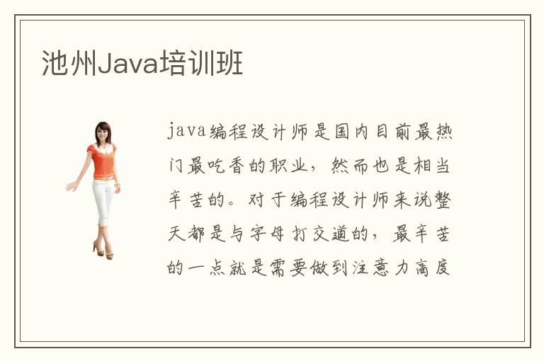 編程這一專業(yè)學好了對于未來的就業(yè)是一個很大的保障,從各大招聘網(wǎng)站的招聘信息來看,企業(yè)提供給編程技術(shù)人才的薪資待遇等各方面都是很優(yōu)異的,對編程技術(shù)人才的需求量也是很大的。想要學好編程最重要的就是要懂得編程的語法,當下使用率最高的編程語言也就是java語言了吧。池州Java培訓班就是一所以java語言編程為重點的培訓學校,值得廣大學子選擇。