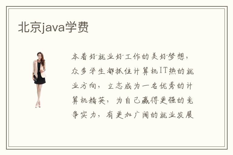 本著好就業(yè)好工作的美好夢(mèng)想,眾多學(xué)生都抓住計(jì)算機(jī)IT熱的就業(yè)方向,立志成為一名優(yōu)秀的計(jì)算機(jī)精英,為自己贏得更強(qiáng)的競(jìng)爭(zhēng)實(shí)力,有更加廣闊的就業(yè)發(fā)展空間。比如,一直備受關(guān)注的java腳本程序設(shè)計(jì),在很多的計(jì)算機(jī)項(xiàng)目中脫穎而出,成為大家學(xué)習(xí)的對(duì)象。那么,北京學(xué)習(xí)java設(shè)計(jì)需要準(zhǔn)備多少費(fèi)用?北京java學(xué)費(fèi)多少?北京java費(fèi)用貴嗎?北京java設(shè)計(jì)培訓(xùn)學(xué)費(fèi)清單。