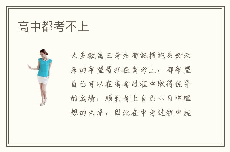 大多數(shù)高三學生的心愿都是可以在高考過程中取得優(yōu)異的成績,順利考上自己心目中理想的大學。然而由于各種各樣的原因,并不是所有考生都可以順利完成心愿的,每年都會出現(xiàn)一些在高考過程中落榜的同學。那么,考不上高中怎么辦呢?考不上高中的同學首先要做的就是調(diào)整好自己的心態(tài),要根據(jù)市場發(fā)展趨勢選擇一門適合自己的、并且具有廣闊發(fā)展前景的專業(yè)進行學習。