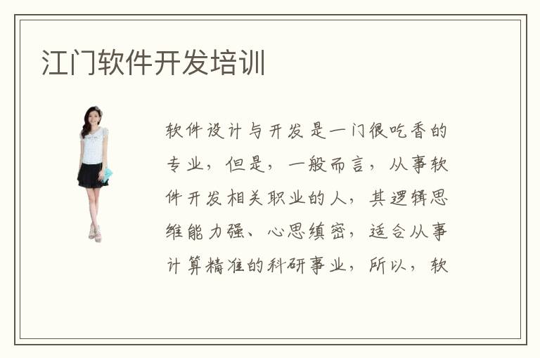 軟件設(shè)計(jì)與開發(fā)是一門很吃香的專業(yè),但是,一般而言,從事軟件開發(fā)相關(guān)職業(yè)的人,其邏輯思維能力強(qiáng)、心思縝密,適合從事計(jì)算精準(zhǔn)的科研事業(yè),所以,軟件設(shè)計(jì)開發(fā)專業(yè)需要的往往都是一些能力超群的精英。江門軟件開發(fā)培訓(xùn)已經(jīng)發(fā)展多少年了?江門軟件設(shè)計(jì)與開發(fā)專業(yè)人才培養(yǎng)計(jì)劃有沒有具體規(guī)律可循?江門軟件開發(fā)工程實(shí)際發(fā)展情況良好嗎?
