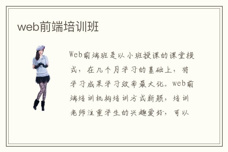 Web前端班是以小班授課的課堂模式,在幾個月學習的基礎上,將學習成果學習效率最大化。web前端培訓機構培訓方式新穎,培訓老師注重學生的興趣愛好,可以讓學生充分體驗到學習的樂趣。web前端培訓學校的選擇有一定的考究,需要參考web前端培訓班的口碑情況的好壞。web前端培訓班教學成果怎么樣?web前端培訓機構培訓項目豐富嗎?