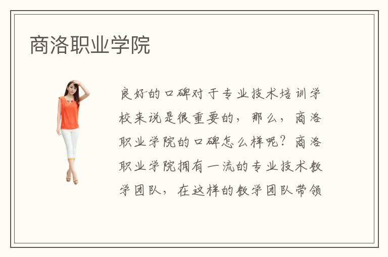 良好的口碑對于專業(yè)技術培訓學校來說是很重要的,那么,商洛職業(yè)學院的口碑怎么樣呢?商洛職業(yè)學院擁有一流的專業(yè)技術教學團隊,在這樣的教學團隊帶領下,同學們自然可以享受到更高水平的專業(yè)教學質量。獨具特色的教學方式也使得學員們的專業(yè)課程學習效率有了很大的提高,對于很多人來說商洛職業(yè)學院是一個學習專業(yè)技術的好平臺,因此商洛職業(yè)學院也獲得了很好的教學口碑。