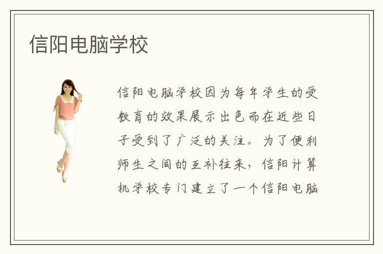 信陽電腦學校因為每年學生的受教育的效果展示出色而在近些日子受到了廣泛的關注。為了便利師生之間的互補往來,信陽計算機學校專門建立了一個信陽電腦培訓專業(yè)訓練平臺,在這樣一個平臺里接受教育,學生們可以把自己遇到的難題、疑惑都提出了,自然會有老師來解答。信陽計算機學校官方介紹很詳細,信陽計算機培訓機構的官方網站上都描述記載得很清楚。