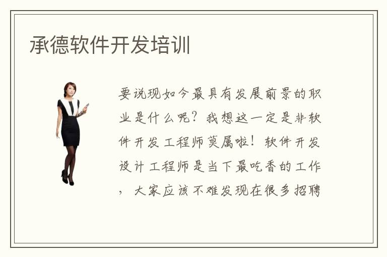 要說(shuō)現(xiàn)如今最具有發(fā)展前景的職業(yè)是什么呢?我想這一定是非軟件開(kāi)發(fā)工程師莫屬啦!軟件開(kāi)發(fā)設(shè)計(jì)工程師是當(dāng)下最吃香的工作,大家應(yīng)該不難發(fā)現(xiàn)在很多招聘廣告,包括網(wǎng)上的各種人才招聘網(wǎng)站上,很多企業(yè)都在招聘專業(yè)的軟件開(kāi)發(fā)設(shè)計(jì)工程師,而且軟件開(kāi)發(fā)設(shè)計(jì)工程師的薪資待遇還是不錯(cuò)的。那么,承德軟件開(kāi)發(fā)培訓(xùn)最有效的途徑你知道是什么嗎?那就是進(jìn)入專業(yè)的軟件開(kāi)發(fā)培訓(xùn)學(xué)校學(xué)習(xí)。