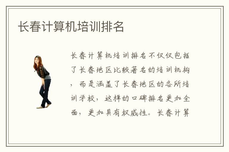 長春計(jì)算機(jī)培訓(xùn)計(jì)算機(jī)培訓(xùn)排名不僅僅包括了長春地區(qū)比較著名的培訓(xùn)機(jī)構(gòu),而是涵蓋了長春地區(qū)的各所培訓(xùn)學(xué)校,這樣的口碑排名更加全面,更加具有權(quán)威性。長春計(jì)算機(jī)培訓(xùn)課程大綱有哪些?長春計(jì)算機(jī)培訓(xùn)學(xué)校根據(jù)這幾年的就業(yè)熱度,選擇一些熱門專業(yè)作為其招牌專業(yè)培訓(xùn),為學(xué)生打造了優(yōu)質(zhì)的就業(yè)前景。長春計(jì)算機(jī)行業(yè)發(fā)展近況如何?計(jì)算機(jī)行業(yè)的發(fā)展空間大不大?