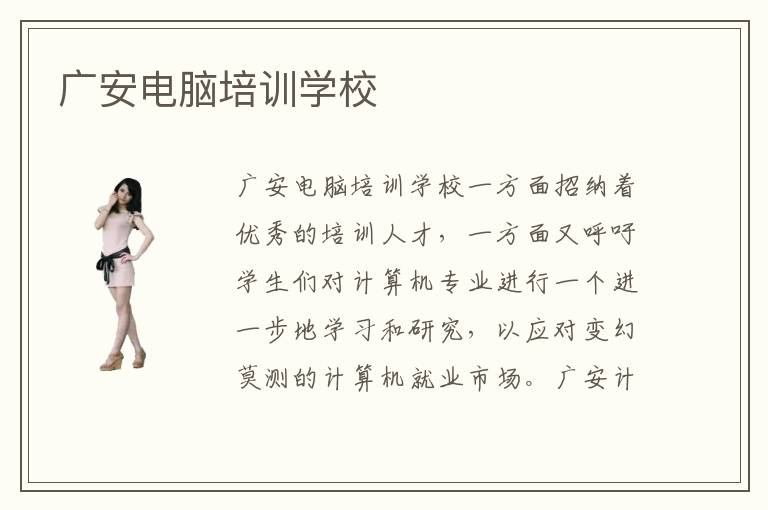 廣安電腦培訓(xùn)學(xué)校一方面招納著優(yōu)秀的培訓(xùn)人才,一方面又呼吁學(xué)生們對計(jì)算機(jī)專業(yè)進(jìn)行一個進(jìn)一步地學(xué)習(xí)和研究,以應(yīng)對變幻莫測的計(jì)算機(jī)就業(yè)市場。廣安計(jì)算機(jī)培訓(xùn)中心技術(shù)輔導(dǎo)含金量比較高,廣安計(jì)算機(jī)學(xué)校的輔導(dǎo)老師特地從相關(guān)合作企業(yè)中尋求項(xiàng)目合作,培養(yǎng)學(xué)生的動手能力和實(shí)際的靈活應(yīng)變能力。廣安計(jì)算機(jī)培訓(xùn)學(xué)校理論教學(xué)的學(xué)習(xí)也是很有必要的。