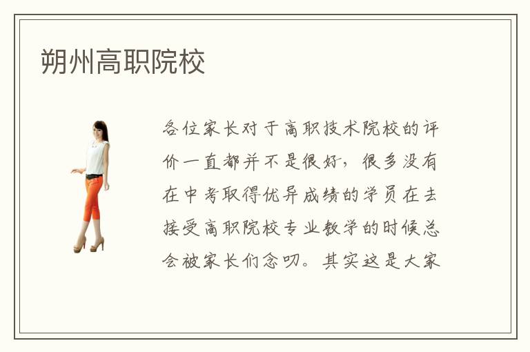 各位家長對于高職技術(shù)院校的評價(jià)一直都并不是很好,很多沒有在中考取得優(yōu)異成績的學(xué)員在去接受高職院校專業(yè)教學(xué)的時(shí)候總會被家長們念叨。其實(shí)這是大家對于高職院校的一種偏見,并不是所有的高職院校在教學(xué)質(zhì)量方面是不過關(guān)的,朔州高職院校就受到了當(dāng)?shù)厥忻竦南矏?。朔州高職院校在成立之初也是遭到了很多人的反對,然而?jiān)持到現(xiàn)在朔州高職院校已經(jīng)成為學(xué)員們進(jìn)行專業(yè)學(xué)習(xí)的好平臺了。