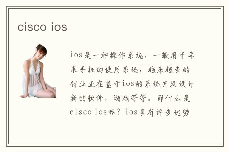 ios是一種操作系統(tǒng),一般用于蘋(píng)果手機(jī)的使用系統(tǒng),越來(lái)越多的行業(yè)正在基于ios的系統(tǒng)開(kāi)發(fā)設(shè)計(jì)新的軟件,游戲等等。那什么是cisco ios呢?ios具有許多優(yōu)勢(shì),ios具有一定的靈活性,而cisco會(huì)在ios的基礎(chǔ)上生成新的功能,可以更快地將設(shè)計(jì)推向市場(chǎng)。其次ios十分注重客戶(hù)的隱私保護(hù),時(shí)間在不斷的變化,ios不斷的發(fā)展,也可以有效的降低公司對(duì)于它的成本投資,這些就是ios的其中幾個(gè)優(yōu)點(diǎn)。