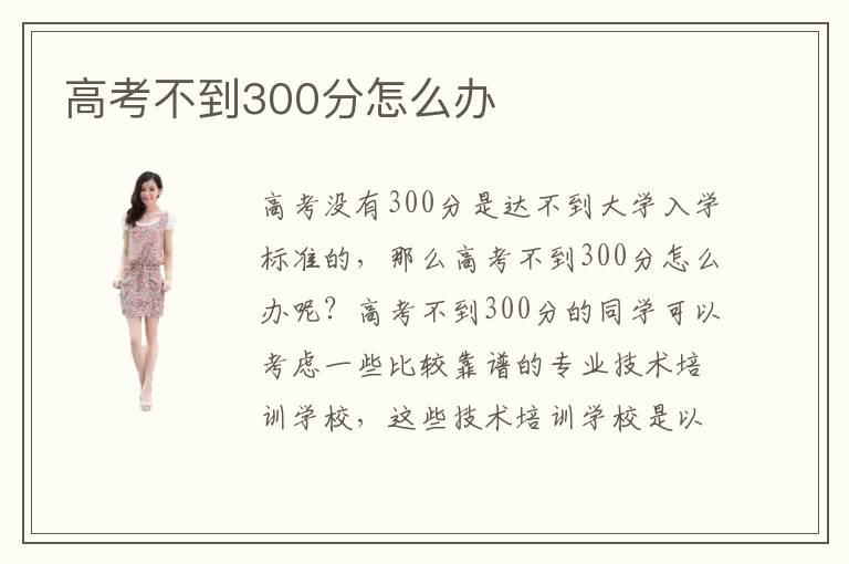 高考沒有300分是達(dá)不到大學(xué)入學(xué)標(biāo)準(zhǔn)的,那么高考不到300分怎么辦呢?高考不到300分的同學(xué)可以考慮一些比較靠譜的專業(yè)技術(shù)培訓(xùn)學(xué)校,這些技術(shù)培訓(xùn)學(xué)校是以專業(yè)技術(shù)教學(xué)為主的,可以幫助學(xué)員們更快更好的完成專業(yè)技術(shù)的學(xué)習(xí),學(xué)好專業(yè)技術(shù)對于未來的就業(yè)也是很有幫助的。在專業(yè)的選擇方面同學(xué)們可以根據(jù)未來的市場發(fā)展趨勢以及自己的興趣所在選擇,這樣的學(xué)習(xí)才會具有很好的學(xué)習(xí)動力。