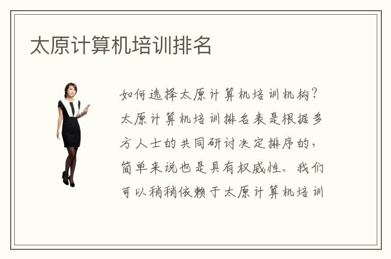 如何選擇太原計算機培訓計算機培訓機構(gòu)?太原計算機培訓排名表是根據(jù)多方人士的共同研討決定排序的,簡單來說也是具有權(quán)威性。我們可以稍稍依賴于太原計算機培訓排名進行培訓機構(gòu)的篩選。當然,另一程度,我們也需要結(jié)合自己的實際情況,進行太原計算機培訓學校的選擇。太原地區(qū)計算機培訓學??诒容^如何進行?需要綜合太原計算機培訓學校的教學情況和辦學色彩等各項指標。