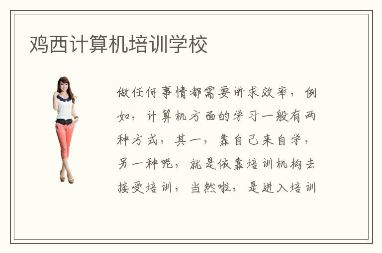 雞西計(jì)算機(jī)學(xué)校考慮到學(xué)生能夠隨時(shí)及時(shí)鞏固復(fù)習(xí)功課,就增加了一個(gè)線上教學(xué)授課的模式,拉近了學(xué)生們與老師網(wǎng)絡(luò)互動(dòng)的距離和機(jī)會(huì)。雞西電腦培訓(xùn)專業(yè)水平不需要懷疑,雞西計(jì)算機(jī)培訓(xùn)機(jī)構(gòu)老師專業(yè)、設(shè)備先進(jìn),不少優(yōu)秀的IT界人才都是從雞西電腦培訓(xùn)班誕生的。雞西計(jì)算機(jī)培訓(xùn)費(fèi)用清單。雞西電腦培訓(xùn)大致需要但是開銷?雞西計(jì)算機(jī)學(xué)校貴嗎?