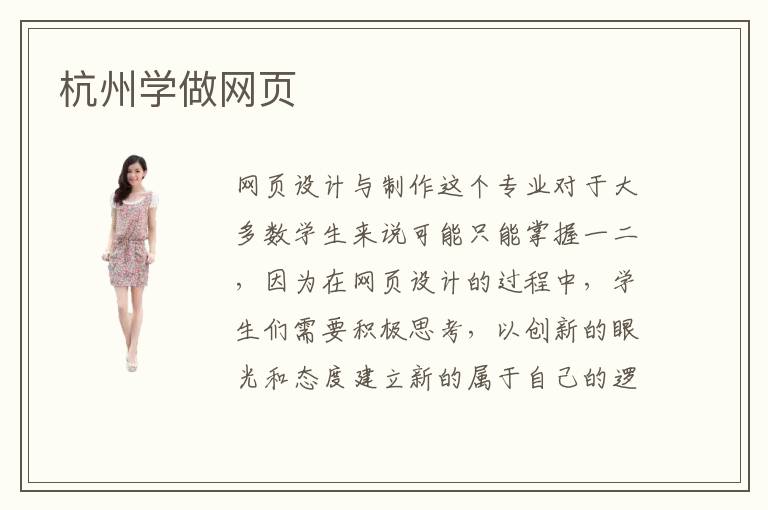 杭州雖然地理位置條件并不是很好,杭州地區(qū)的經(jīng)濟、科技水平也沒有達到比較高的水準,但是,這些依然不是阻擋學生們學習網(wǎng)頁設計的熱情的原因了。在杭州學做網(wǎng)頁需要在培訓老師的專業(yè)的指導下,有一個比較高水平的培訓機構去幫助自己學習。杭州學習網(wǎng)頁設計難度大不大?杭州網(wǎng)頁設計與制作專業(yè)發(fā)展前景好不好?杭州網(wǎng)頁設計學好能受益匪淺。