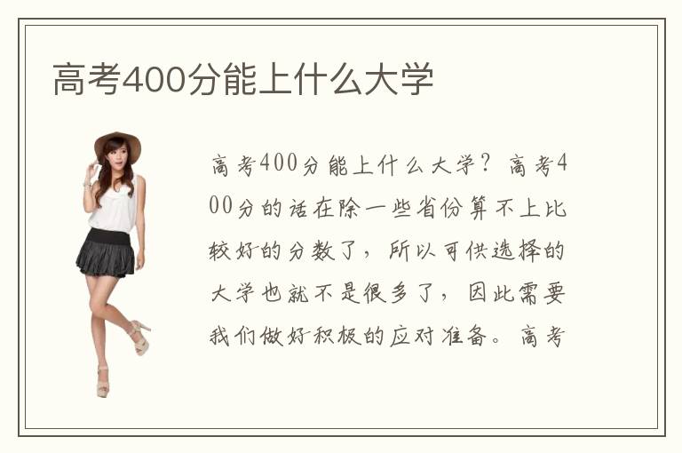 高考400分能上什么大學?高考400分的話在除一些省份算不上比較好的分數(shù)了,所以可供選擇的大學也就不是很多了,因此需要我們做好積極的應(yīng)對準備。高考400分要怎么讀本科?高考400分怎么進行更深層次的學習呢?高考是一項很重要的過渡過程,由此展開的各項學習是需要更多更豐富地探討的。高考400分怎么選擇學校?高考分數(shù)不夠高的話要好好思考。