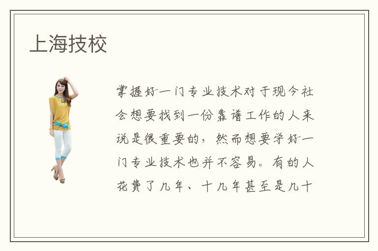 “大學(xué)生就業(yè)難”的情況已經(jīng)很普遍了,越來越多的大學(xué)生在畢業(yè)之際會(huì)開始擔(dān)心未來就業(yè)問題,以致于本就迷茫的同學(xué)們變得更加迷茫了。大學(xué)生普遍都是更注重理論知識(shí)學(xué)習(xí)的,在實(shí)踐操作方面還是比較薄弱的,因此要想就業(yè)得到保障,提高自己的專業(yè)技術(shù)水平還得很有必要的。上海技校顧名思義就是為了培養(yǎng)技術(shù)人才而成立的,那么你知道這些上海技校究竟靠譜不靠譜呢?