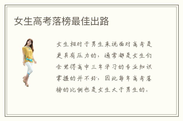 女生相對于男生來說面對高考是更具有壓力的,通常都是女生們會覺得高中三年學(xué)習(xí)的專業(yè)知識掌握的并不好,因此每年高考落榜的比例也是女生大于男生的。那么,你知道女生高考落榜最佳出路是什么嗎?高考落榜最重要的就是調(diào)整心情,選擇適合自己的專業(yè)去努力學(xué)習(xí),而女生相對于男生來說審美設(shè)計(jì)方面更出色,因此女生高考落榜最佳出路就是選擇一些設(shè)計(jì)類的專業(yè)進(jìn)行學(xué)習(xí)。