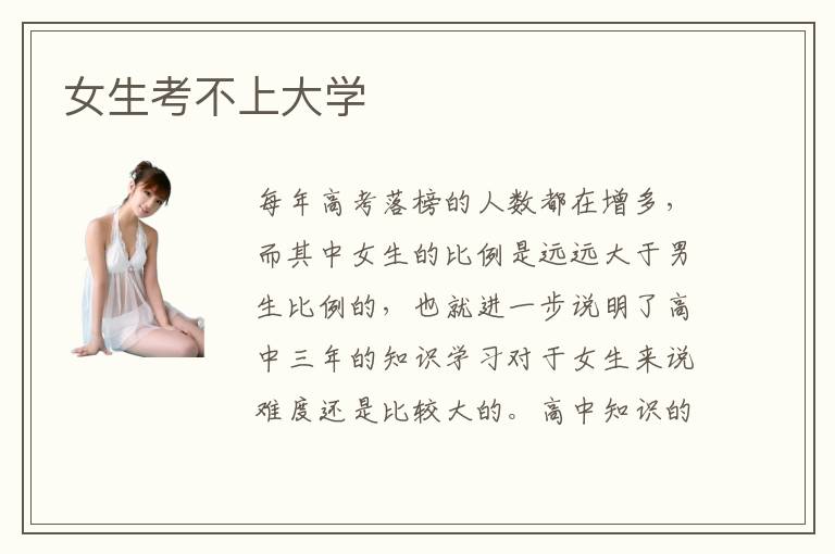 每年高考落榜的人數(shù)都在增多,而其中女生的比例是遠(yuǎn)遠(yuǎn)大于男生比例的,也就進(jìn)一步說明了高中三年的知識(shí)學(xué)習(xí)對(duì)于女生來說難度還是比較大的。高中知識(shí)的學(xué)習(xí)是需要邏輯思維能力的,尤其是高中的理科,但是就邏輯思維能力而言男生是比較優(yōu)秀的,這也就造成了很多女生在高考過程中失利的情況。那么,女生考不上大學(xué)應(yīng)該怎么辦呢?女生考不上大學(xué)可以去哪些平臺(tái)進(jìn)行這樣學(xué)習(xí)呢?