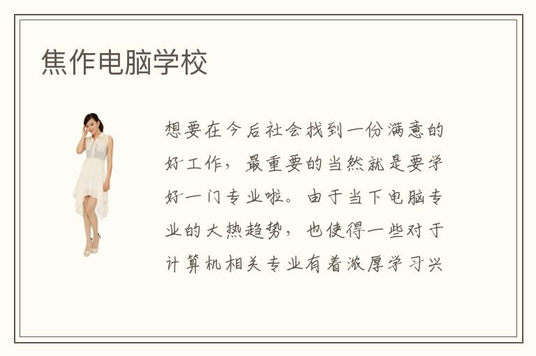 焦作電腦學(xué)校致力于為青年學(xué)子打造專屬的計算機訓(xùn)練課程,培養(yǎng)一代又一代優(yōu)秀的活力的青春的計算機新人才,保證計算機的專業(yè)學(xué)習(xí)可以達(dá)到比較好的學(xué)習(xí)狀態(tài)。焦作電腦培訓(xùn)專業(yè)類目又有什么呢?焦作電腦培訓(xùn)班安排了高質(zhì)量的老師和高質(zhì)量的課程,滿足大多數(shù)學(xué)生的需要。焦作計算機培訓(xùn)班課程安排是比較人性化的,可以按照學(xué)生的自主意愿進(jìn)行專業(yè)指導(dǎo)。