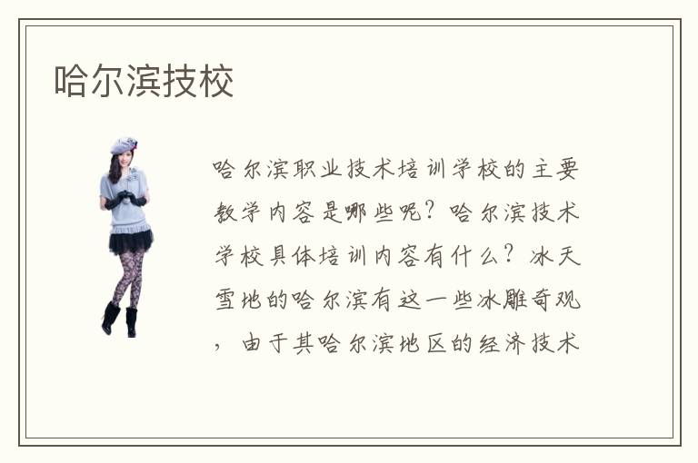 哈爾濱職業(yè)技術(shù)培訓(xùn)學(xué)校的主要教學(xué)內(nèi)容是哪些呢?哈爾濱技術(shù)學(xué)校具體培訓(xùn)內(nèi)容有什么?冰天雪地的哈爾濱有這一些冰雕奇觀,由于其哈爾濱地區(qū)的經(jīng)濟(jì)技術(shù)還有待提高,其科技實(shí)力也有大幅度的上升空間,所以哈爾濱技校也受到了廣大領(lǐng)導(dǎo)企業(yè)家的青睞,紛紛投資哈爾濱電腦技術(shù)培訓(xùn)中心,希望以建立多樣化的計(jì)算機(jī)人才。哈爾濱技術(shù)培訓(xùn)學(xué)校發(fā)展情況良好。