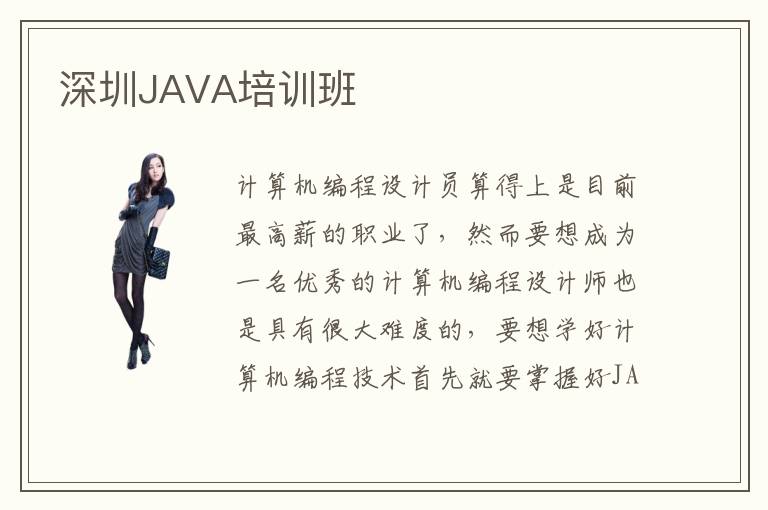 計算機編程設(shè)計員算得上是目前最高薪的職業(yè)了,然而要想成為一名優(yōu)秀的計算機編程設(shè)計師也是具有很大難度的,要想學好計算機編程技術(shù)首先就要掌握好JAVA語言編程設(shè)計技術(shù),總的來說JAVA語言的就業(yè)前景還是很廣闊的。那么怎樣才能又快又好的學會JAVA語言編程設(shè)計呢?深圳JAVA培訓班是大家學習JAVA的靠譜平臺,想要成為計算機編程設(shè)計師的同學可以考慮一下深圳JAVA培訓班。
