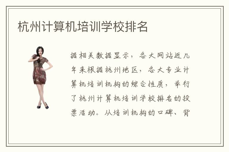 據(jù)相關數(shù)據(jù)顯示,各大網(wǎng)站近幾年來根據(jù)杭州地區(qū),各大專業(yè)計算機培訓機構的綜合性質,舉行了杭州計算機培訓學校排名的投票活動。從培訓機構的口碑、背景、師資力量、教學水平等方面,進行反復的對比、篩選,足以見得,培訓機構排名的真實性很強。因此,這個排名的數(shù)據(jù)可以作為廣大杭州地區(qū)想要學習計算機專業(yè)的學生,對于培訓機構選擇的重要參考依據(jù)。