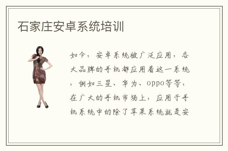如今,安卓系統(tǒng)被廣泛應(yīng)用,各大品牌的手機都應(yīng)用著這一系統(tǒng),例如三星、華為、oppo等等,在廣大的手機市場上,應(yīng)用于手機系統(tǒng)中的除了蘋果系統(tǒng)就是安卓系統(tǒng)了,并且安卓系統(tǒng)應(yīng)用的最為廣泛,用戶對其評價也很高。面對著這么大的需求,石家莊增添了很多安卓系統(tǒng)培訓(xùn)學(xué)校,以便于一心求學(xué)的人們接受培訓(xùn),也促進了石家莊地區(qū)對于安卓系統(tǒng)的研究。