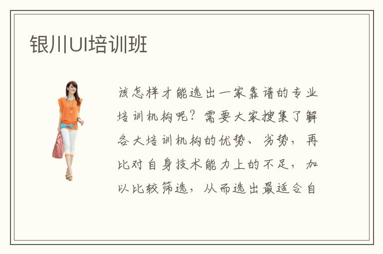 該怎樣才能選出一家靠譜的專業(yè)培訓(xùn)機構(gòu)呢?需要大家搜集了解各大培訓(xùn)機構(gòu)的優(yōu)勢、劣勢,再比對自身技術(shù)能力上的不足,加以比較篩選,從而選出最適合自己的培訓(xùn)機構(gòu)。需要大家考慮的有很多方面,例如這家培訓(xùn)機構(gòu)的口碑好壞、教學(xué)水平高低以及就業(yè)率等,因為這些因素也可以直接反應(yīng)出這所培訓(xùn)機構(gòu)是否優(yōu)秀。那么,銀川UI培訓(xùn)班怎么樣呢?
