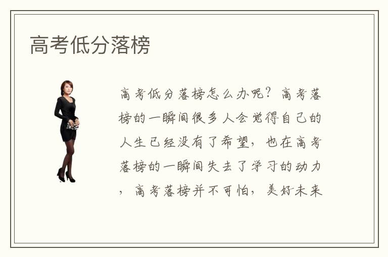 高考低分落榜怎么辦呢?高考落榜的一瞬間很多人會覺得自己的人生已經(jīng)沒有了希望,也在高考落榜的一瞬間失去了學習的動力,高考落榜并不可怕,美好未來的決定性因素還是來自于同學們自身的專業(yè)技術(shù)水平能力。因此高考落榜以后第一步就是要調(diào)整自己的心態(tài),要重新找到人生學習的動力。接著就是要選擇最合適的專業(yè)進行努力學習,這樣才是對自己未來人生的負責。