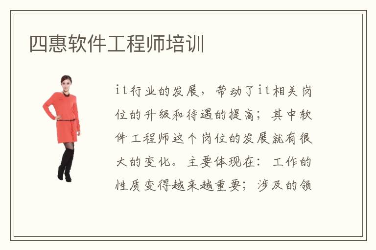 it行業(yè)的發(fā)展,帶動了it相關(guān)崗位的升級和待遇的提高;其中軟件工程師這個崗位的發(fā)展就有很大的變化。主要體現(xiàn)在:工作的性質(zhì)變得越來越重要;涉及的領(lǐng)域越來越廣;薪資待遇越來越高。四惠軟件工程師培訓(xùn)應(yīng)運(yùn)而生,優(yōu)秀的四惠軟件工程師培訓(xùn)機(jī)構(gòu)有:北大青鳥,北京積云教育,中軟卓越,兄弟連等。在師資力量上,這幾所四惠軟件工程師培訓(xùn)機(jī)構(gòu)的配置都是不錯的,教師主要由:研究生以上學(xué)歷的教師和各大企業(yè)的優(yōu)秀管理者組成,他們分別負(fù)責(zé)理論和實(shí)踐的教學(xué),各取所長;很大的提高了培訓(xùn)學(xué)員的學(xué)習(xí)效率。那么四惠軟件工程師就業(yè)前景會發(fā)生怎么樣的變化呢?從目前整個行業(yè)的發(fā)展態(tài)勢來看,軟件工程師就業(yè)前景會變得越來越好,但是入職后面對的專業(yè)技術(shù)上的挑戰(zhàn)會越來越多。