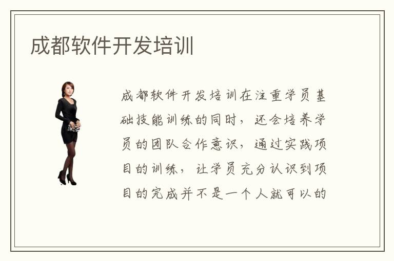 成都軟件開發(fā)培訓在注重學員基礎技能訓練的同時,還會培養(yǎng)學員的團隊合作意識,通過實踐項目的訓練,讓學員充分認識到項目的完成并不是一個人就可以的,需要的是一個團隊成員之間的互相合作。從成都軟件開發(fā)培訓學校畢業(yè)的學生都可以在現(xiàn)今社會找到一份滿意的工作,而且平均實習的工資都在其他職業(yè)的平均值之上,超高的技能水平可以完美完成企業(yè)的項目,都得到了各大企業(yè)的重要。