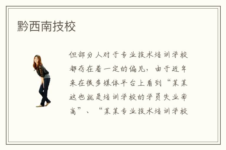 但部分人對(duì)于專業(yè)技術(shù)培訓(xùn)學(xué)校都存在著一定的偏見(jiàn),由于近年來(lái)在很多媒體平臺(tái)上看到“某某這也就是培訓(xùn)學(xué)校的學(xué)員失業(yè)率高”、“某某專業(yè)技術(shù)培訓(xùn)學(xué)校的老師不負(fù)責(zé)”等等負(fù)面消息,也就進(jìn)一步加深了大家對(duì)于專業(yè)技術(shù)培訓(xùn)學(xué)校的偏見(jiàn),認(rèn)為學(xué)生在專業(yè)技術(shù)培訓(xùn)學(xué)校學(xué)習(xí)是一種浪費(fèi)時(shí)間的表現(xiàn)。那么,對(duì)于黔西南技校大家的評(píng)價(jià)是怎樣的呢?黔西南技校的專業(yè)教學(xué)效果好不好呢?