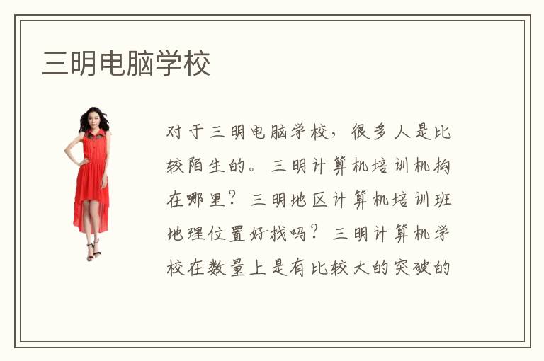 對于三明電腦學校,很多人是比較陌生的。三明計算機培訓機構(gòu)在哪里?三明地區(qū)計算機培訓班地理位置好找嗎?三明計算機學校在數(shù)量上是有比較大的突破的,學習計算機技術(shù)的學生大多抱著比較堅定的學習信心的,雖然知道計算機技術(shù)的學習過程會比較困難,精通計算機技術(shù)需要有足夠強大的邏輯思維。學生要進入三明計算機學校中心認真地學習知識。