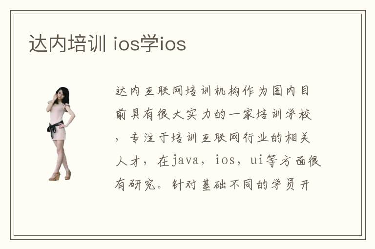 達(dá)內(nèi)互聯(lián)網(wǎng)培訓(xùn)機(jī)構(gòu)作為國內(nèi)目前具有很大實(shí)力的一家培訓(xùn)學(xué)校,專注于培訓(xùn)互聯(lián)網(wǎng)行業(yè)的相關(guān)人才,在java,ios,ui等方面很有研究。針對基礎(chǔ)不同的學(xué)員開設(shè)不同的培訓(xùn)班,安排不同的培訓(xùn)課程。比如給零基礎(chǔ)的學(xué)員開設(shè)ios基礎(chǔ)班,給有基礎(chǔ)的學(xué)員開設(shè)提升班等等。在眾多專業(yè)的ios培訓(xùn)學(xué)校中,經(jīng)過不斷的對比,以及各方面的考察,最終在達(dá)內(nèi)培訓(xùn)ios學(xué)ios是正確的選擇。
