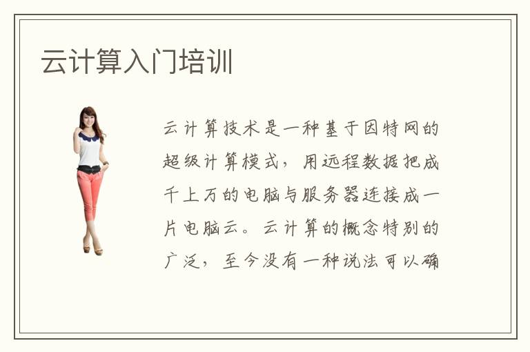 云計(jì)算技術(shù)是一種基于因特網(wǎng)的超級計(jì)算模式,用遠(yuǎn)程數(shù)據(jù)把成千上萬的電腦與服務(wù)器連接成一片電腦云。云計(jì)算的概念特別的廣泛,至今沒有一種說法可以確定到底什么是云計(jì)算技術(shù)。了解云計(jì)算技術(shù)的方式有許多,云計(jì)算入門培訓(xùn)就是其中的有一種。云計(jì)算入門培訓(xùn)是需要學(xué)習(xí)非常多的專業(yè)課的。云計(jì)算和虛擬化的關(guān)系比較的密切,想要進(jìn)行云計(jì)算入門培訓(xùn)就需要先了解虛擬化課程。首先,操作系統(tǒng)要懂得,其次,需要學(xué)習(xí)數(shù)據(jù)庫的安裝和使用,然后,還要學(xué)習(xí)存儲的基礎(chǔ)知識。最后,學(xué)習(xí)網(wǎng)絡(luò)的基礎(chǔ)知識。這些都屬于云計(jì)算入門培訓(xùn)的課程,雖然都是一些基礎(chǔ)知識,但是,這每一門課程都是必須要去學(xué)習(xí)的。如今的各個(gè)企業(yè)工作平臺都會使用云計(jì)算,所以說想學(xué)習(xí)云計(jì)算技術(shù),就需要先進(jìn)行云計(jì)算入門培訓(xùn)。