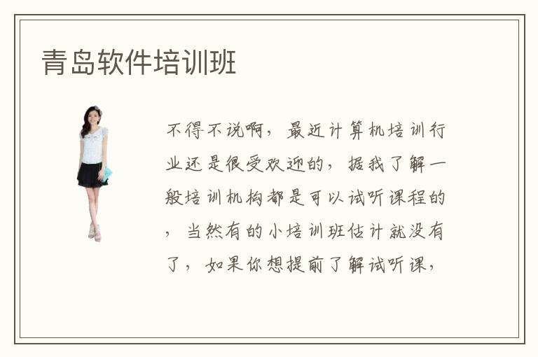 不得不說(shuō)啊,最近計(jì)算機(jī)培訓(xùn)行業(yè)還是很受歡迎的,據(jù)我了解一般培訓(xùn)機(jī)構(gòu)都是可以試聽(tīng)課程的,當(dāng)然有的小培訓(xùn)班估計(jì)就沒(méi)有了,如果你想提前了解試聽(tīng)課,可以去一些口碑好的軟件培訓(xùn)班申請(qǐng)一下,青島軟件培訓(xùn)班也是看你選擇哪個(gè)培訓(xùn)班呢,如果你找的是青島軟件培訓(xùn)班大的培訓(xùn)班是可以先去試聽(tīng)課程的,而且他們都是有官網(wǎng)的,你直接網(wǎng)上搜一下培訓(xùn)班名稱(chēng)去官網(wǎng)看看,一般都有課程介紹,費(fèi)用介紹,師資力量等方面介紹,還有就是在線學(xué)習(xí)比較方便,隨時(shí)隨地可以學(xué)習(xí),至于是否可以分期付學(xué)費(fèi)這個(gè)問(wèn)題,我個(gè)人覺(jué)得是可以的,畢竟現(xiàn)在分期付款應(yīng)用廣泛,不過(guò)具體到哪個(gè)培訓(xùn)班是否可以,就需要你親自問(wèn)一下,一般大的培訓(xùn)班是可以分期付款的,當(dāng)然你選擇培訓(xùn)的機(jī)構(gòu)也是口碑不錯(cuò)的大的培訓(xùn)班