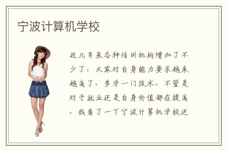 近幾年來各種培訓(xùn)機(jī)構(gòu)增加了不少了,大家對(duì)自身能力要求越來越高了,多學(xué)一門技術(shù),不管是對(duì)于就業(yè)還是自身價(jià)值都在提高,我看了一下寧波計(jì)算機(jī)學(xué)校還是有不少呢,其實(shí)每個(gè)地方都有體現(xiàn)自己區(qū)域的培訓(xùn)機(jī)構(gòu),我生活的城市,各類培訓(xùn)班真的是隨處可見,大街小巷都可以看到各類培訓(xùn)機(jī)構(gòu)的宣傳單,我想寧波計(jì)算機(jī)學(xué)校也不例外,你可能有時(shí)候走在路上都會(huì)收到某培訓(xùn)機(jī)構(gòu)的宣傳單,當(dāng)然不排除一些是小作坊的,寧波計(jì)算機(jī)學(xué)校排名靠前的學(xué)校,你可以直接去網(wǎng)上查一,搜寧波計(jì)算機(jī)學(xué)校,就會(huì)出現(xiàn)很多個(gè)相關(guān)信息,點(diǎn)進(jìn)去一個(gè)個(gè)了解就可以了,至于排名靠前的我個(gè)人覺得也不見得是好的,有可能是他們廣告宣傳力度大,大家比較熟悉罷了,當(dāng)然這類計(jì)算機(jī)學(xué)校你可以作為參考,畢竟網(wǎng)絡(luò)發(fā)展迅速,各類信息參差不齊,網(wǎng)上可以查到相關(guān)信息的