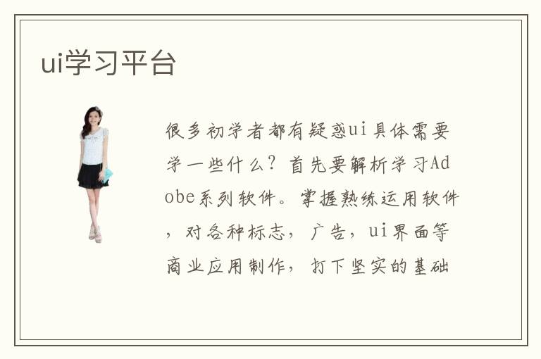 很多初學者都有疑惑ui具體需要學一些什么?首先要解析學習Adobe系列軟件。掌握熟練運用軟件,對各種標志,廣告,ui界面等商業(yè)應用制作,打下堅實的基礎。其次,還要明確學習目的。超媒體結構設計,流程設計,獨立完成項目的結構策劃能力,針對行業(yè)流程,色彩理論,色彩工程,平面構成的學習。還需要學習一些品牌設計。例如,信封,信紙,傳真,紙,文件夾,辦公卡的辦公用品。等等。還要學會移動應用設置流程,也就是學著了解移動應用,從項目啟動到項目開發(fā)的整個流程。還有就是個系統(tǒng)ui設計規(guī)范。ios,Android,windows phone,各系統(tǒng)間的區(qū)別。手機啟動圖標設計也需要學會。以上這些內(nèi)容在ui學習平臺上面都可以學得到。